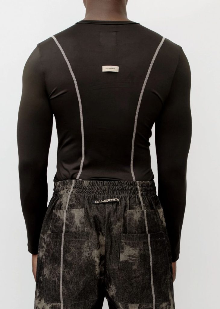 The key elements I keep seeing are fairly consistent. Dark palettes still dominate black, of course, but often layered with slightly different tones to add depth rather than contrast. Technical fabrics play a big role too; pieces need to be breathable, durable, and easy to move in if you’re spending hours on the dancefloor. Tops are leaning more towards a tighter, sport-inspired fit, giving outfits a slightly more athletic edge. At the same time, bottoms are moving away from basic black jeans. Instead, I’m seeing more variation, whether that’s subtle prints, added chains, or styling that incorporates a crossbody bag as part of the overall look. Sunglasses are also a staple at any rave; some would even say a requirement, and we all know why.