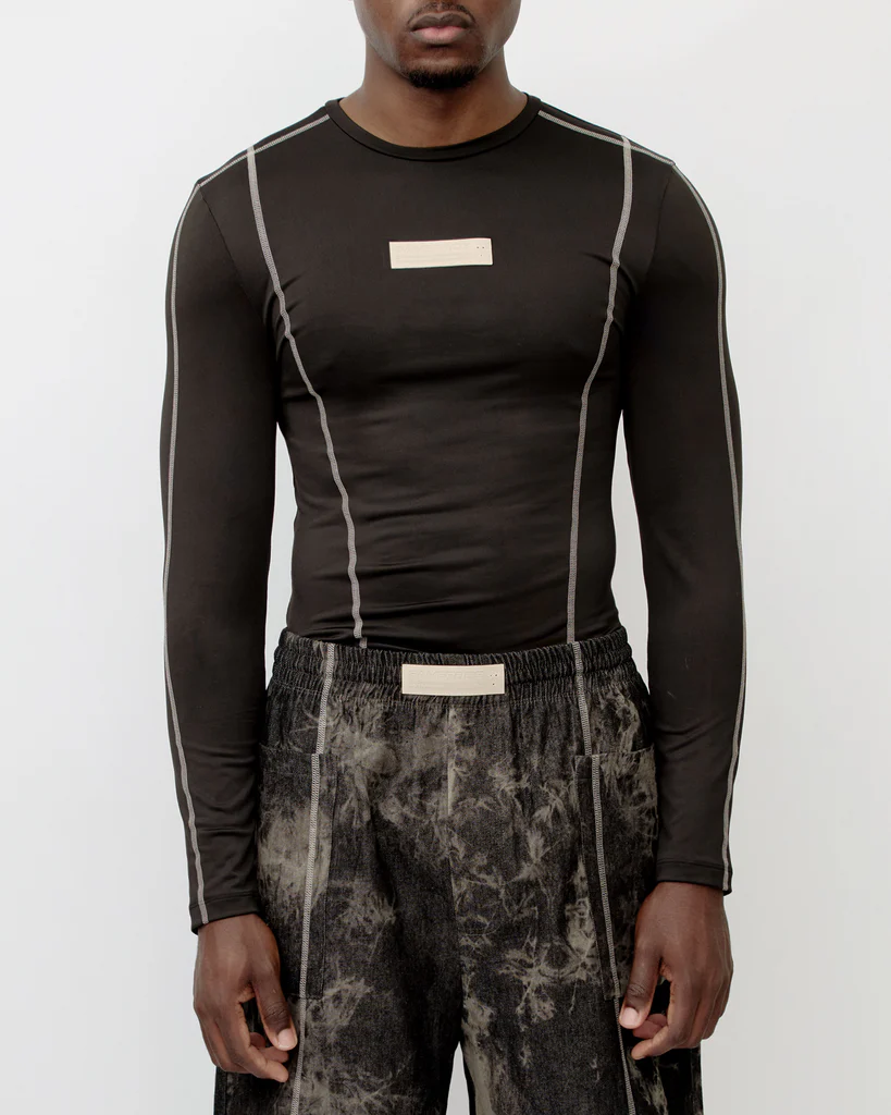 To me, the designs sit somewhere between streetwear and rave culture. There’s a mix of relaxed silhouettes, dark and muted tones and pieces that feel comfortable but still shape the body nicely. The logo also reflects that direction, it has a slightly tech or rave feel to it, at least that’s the vibe it gives me.